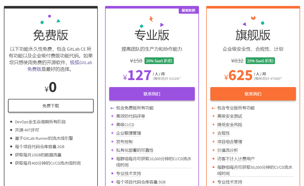 以下功能永久性免费,包含 GitLab CE 所有功能以及企业级付费版功能代码。如果您只想使用免费的开源软件,极狐GitLab免费版是最好的选择。