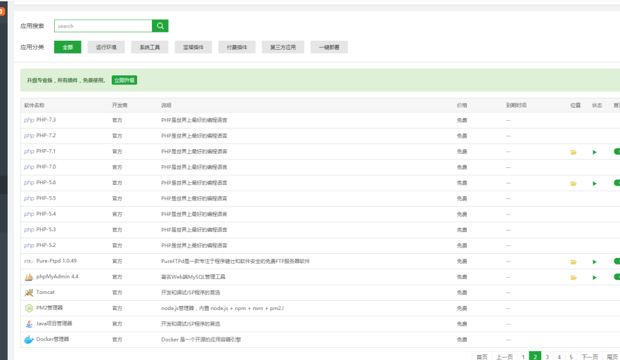 进入面板就开始安装环境,可在软件商店安装,apache/ngnix+php7.1+mysql5.6