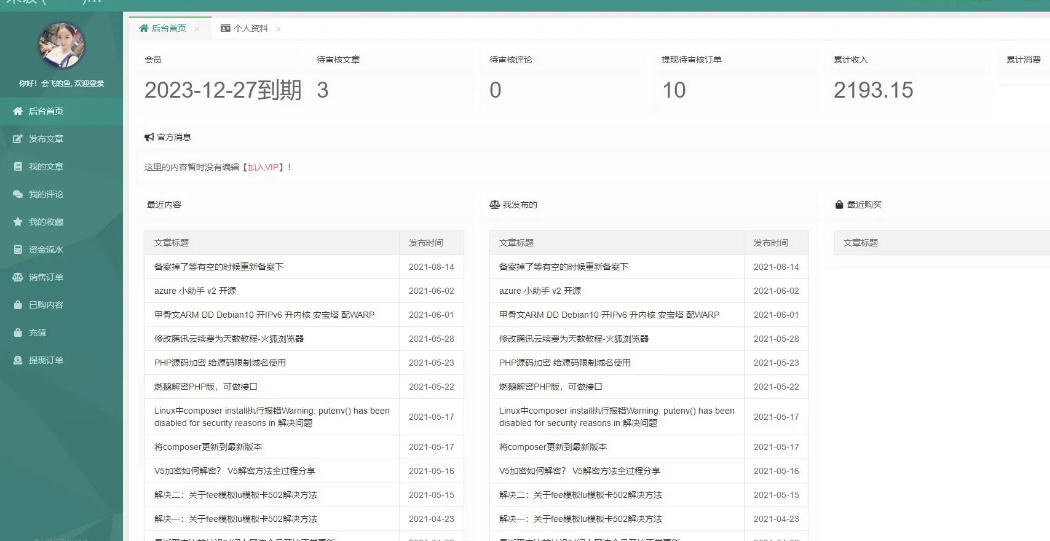 UserEmlog基于Emlog6.0.1老司机修改版开发的,暂时不知道支持不支持其他版本。(小编测试Pro版本,是有点bug,有能力的自己修复下。)