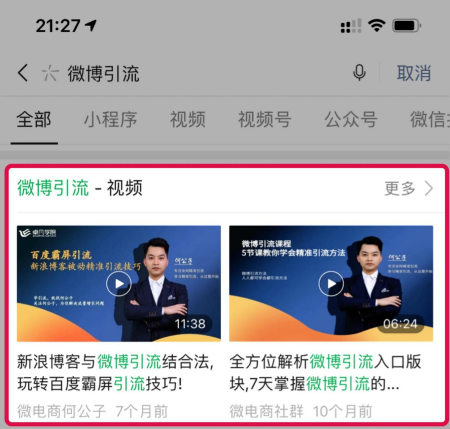 目前视频内容排名最好的内容来源就是公众号视频和腾讯视频内容,大家指需要抓住这2个平台输出视频内容就可以了,毕竟公众号以及腾讯视频都是微信自家的孩子,自然排名优势要优于其他平台的内容。