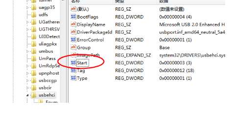 2、依次展开HEKY_LOCAL_MACHINESYSTEMCurrentControlSetServicesusbehci