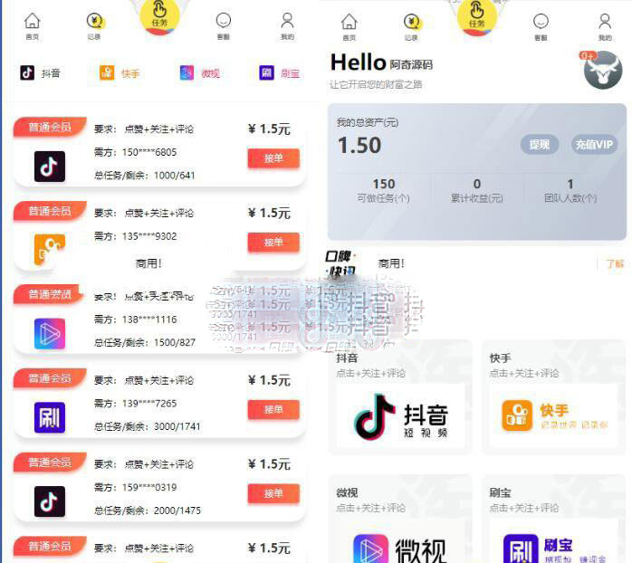 短视频点赞系统 支持抖音+快手+刷宝+微视等所有主流短视频点赞/关注/评论系统源码