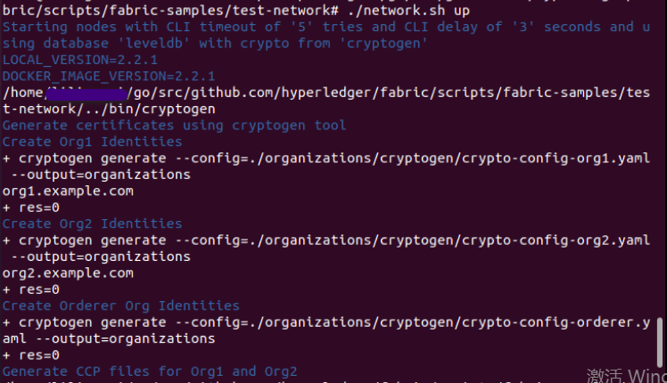 启动 fabric 网络:sudo ./network.sh up
