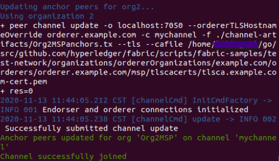 在网络上建立通道:sudo ./network.sh createChannel