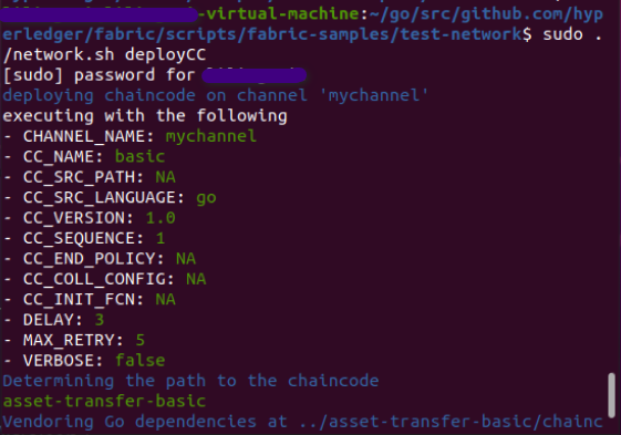 在通道上启动链码:sudo ./network.sh deployCC
