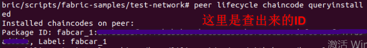 查找 peer 上的 packageID 并将其保存到环境变量中。