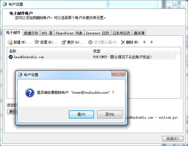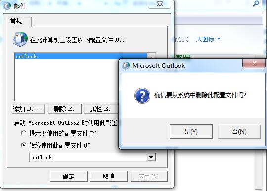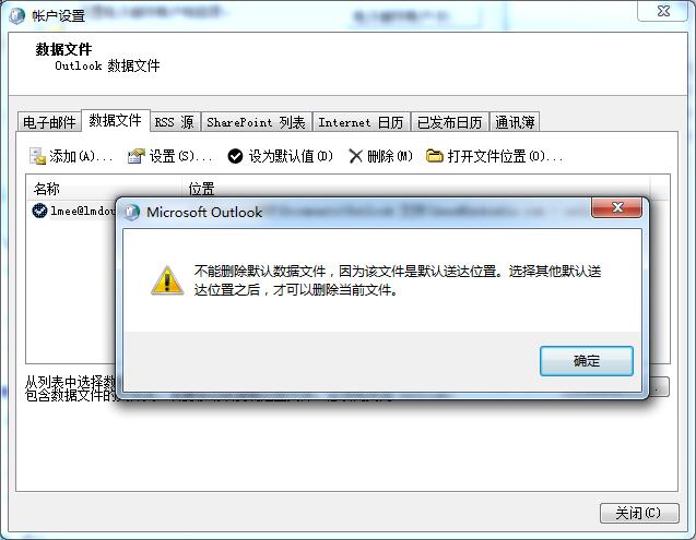 注意在删除时数据文件是无法完全删除的,总要保留一个,这时就先不用管他,返回到邮件设置中,点击显示配置文件... 将所有的配置文件删除就可以了。