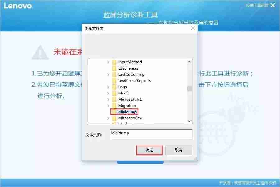 工具会自动在系统盘中寻找蓝屏文件。如果没有寻找到,则会弹出提示【未能在系统盘发现蓝屏文件】。