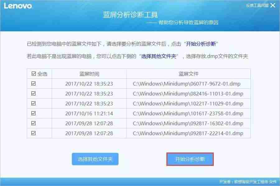超实用广告走一波!除了上面两种方法,最智 (懒) 能 (人) 的方法莫过于使用蓝屏诊断大杀器——联想官方蓝屏分析诊断工具。