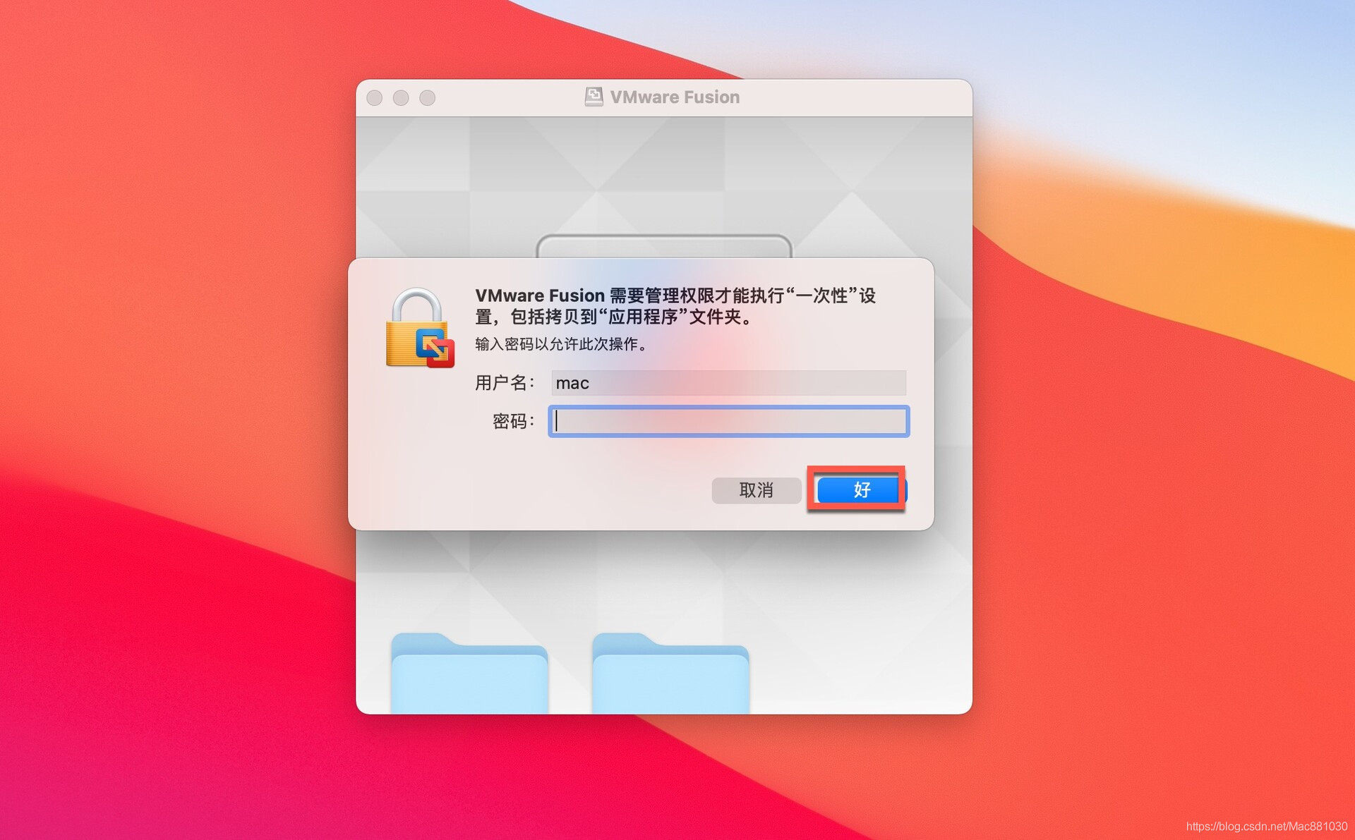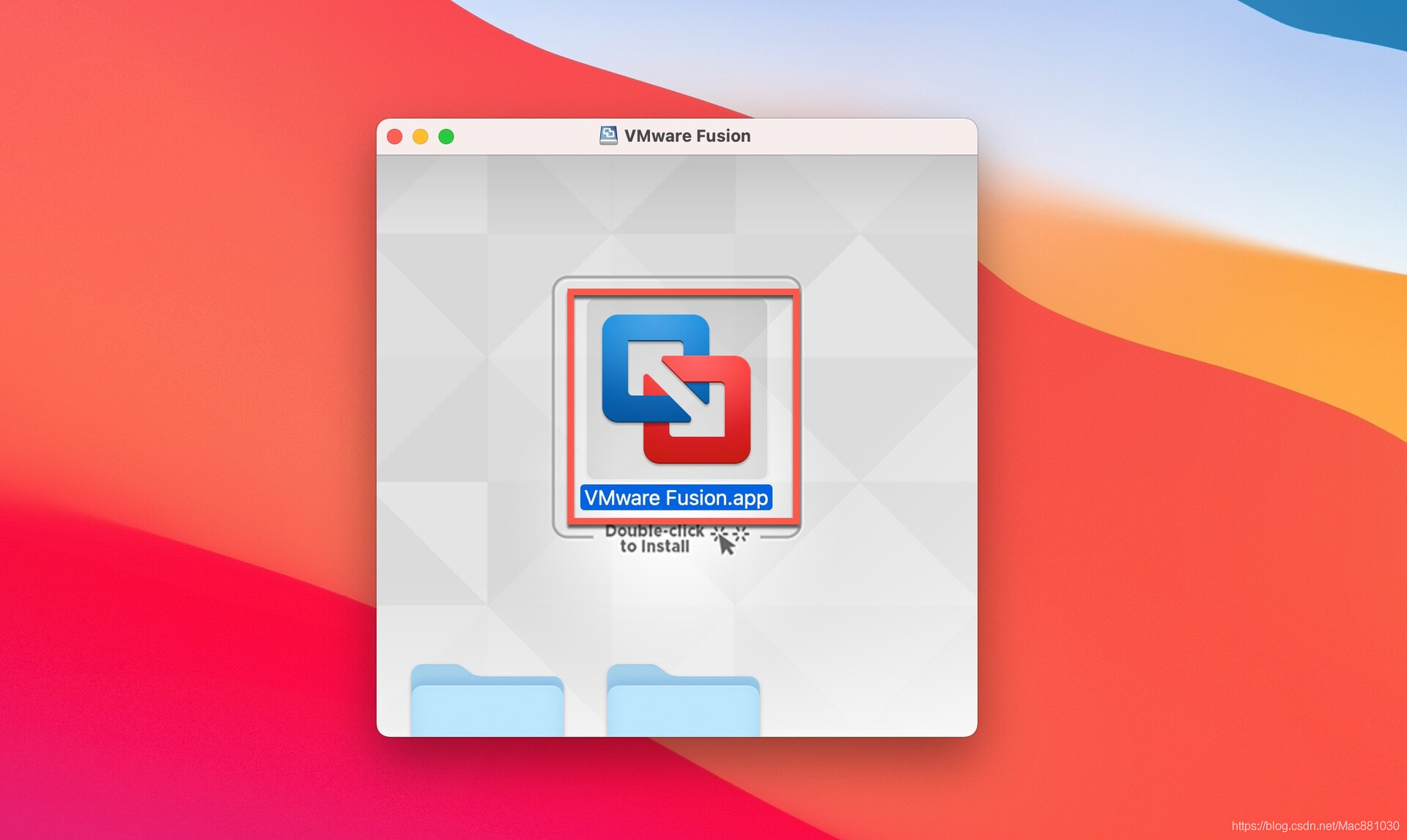 注册完成之后登陆就可以完成下载软件。软件下载完成后打开,双击VMware Fusion.app进行安装