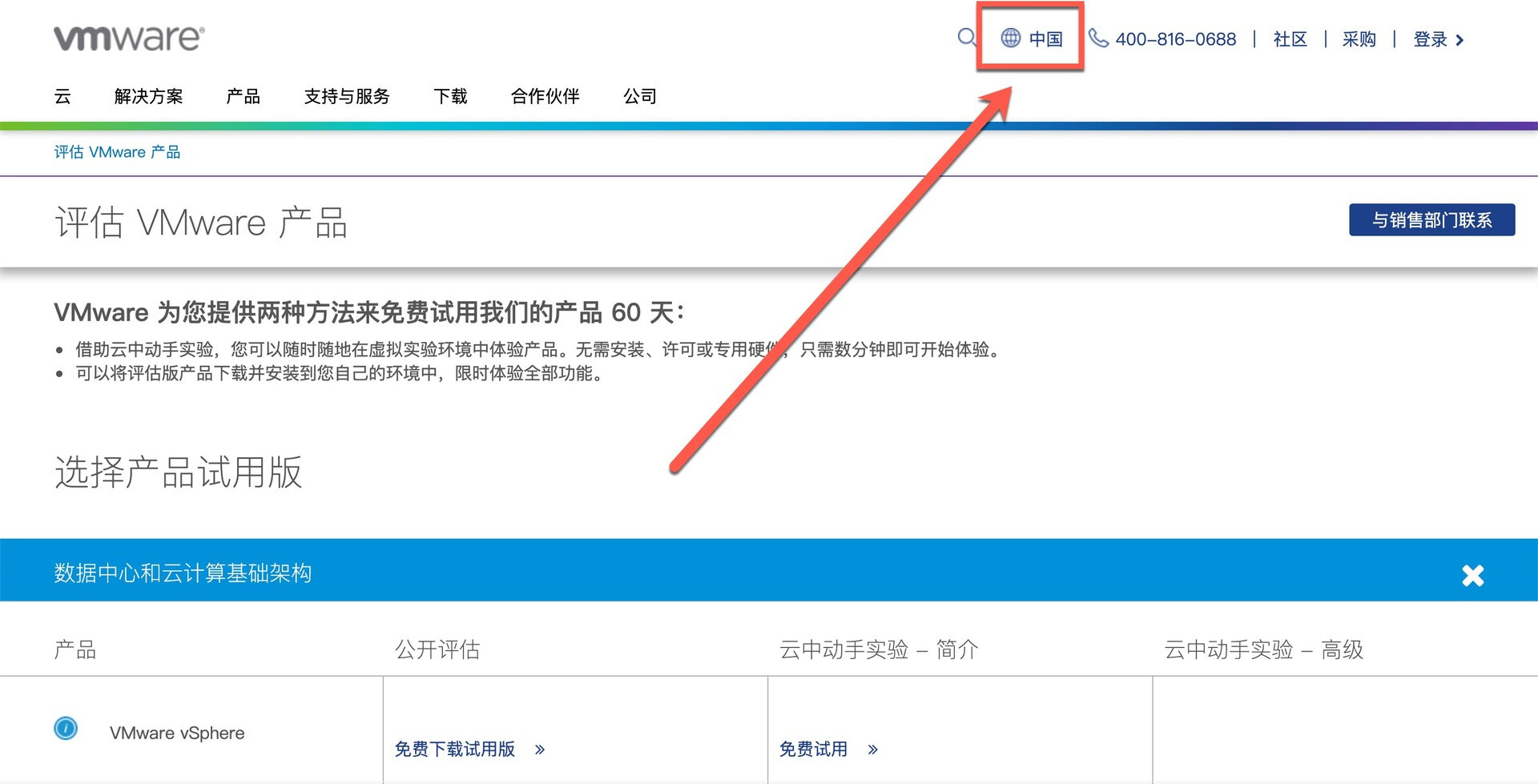 如果跳转的是中文版的VMware官网页面,请将地区更改为美国再重新点击获取免费的许可证密钥