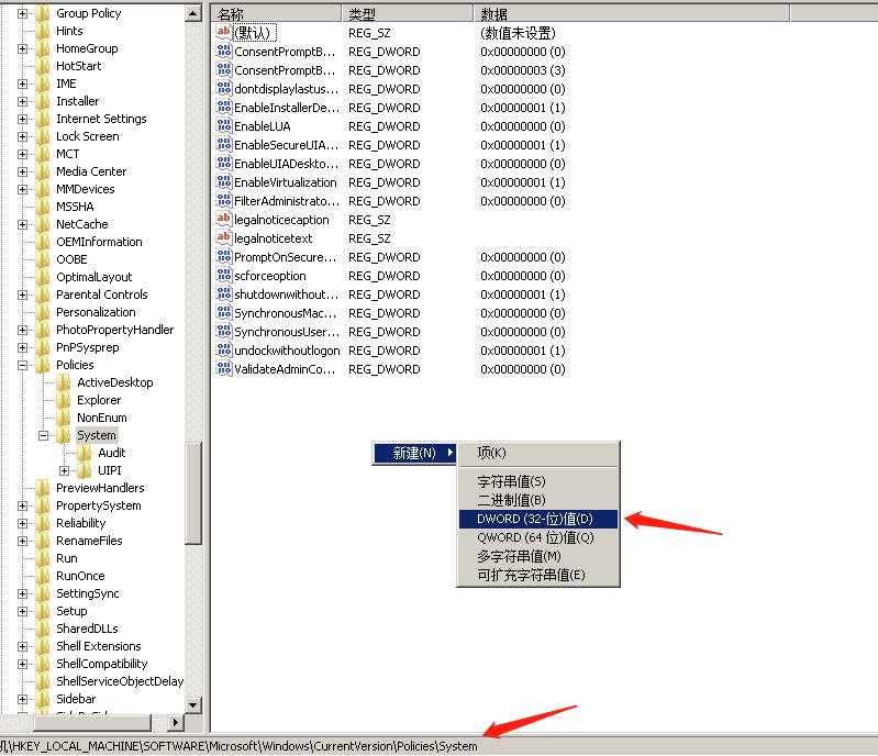 2.Navigate all the way to HKEY_LOCAL_MACHINESOFTWAREMicrosoftWindowsCurrentVersionPoliciesSystem.