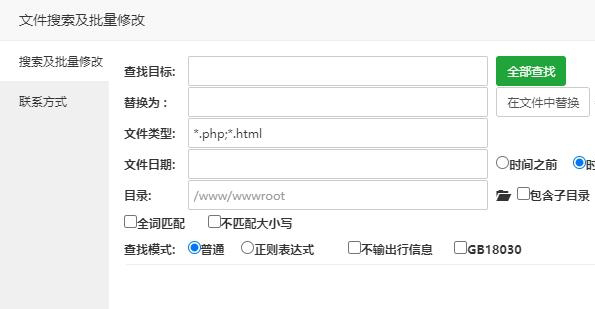 有时候我们需要定位我们网页代码的位置搜索文件这个工具对于不熟悉linux的用户来说就太容易了。文件内容搜索及批量修改(可整站修改及自动备份)。