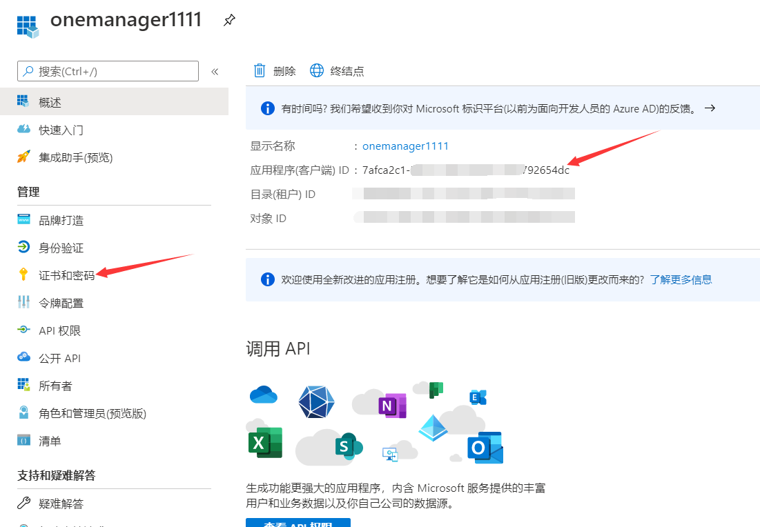 注册完之后,复制记录下客户端ID,备用,然后点击左侧的 证书和密码