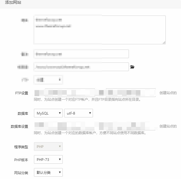 配置好宝塔以及LNMP环境后,创建一个新的站点,域名填写和原网站保持一致