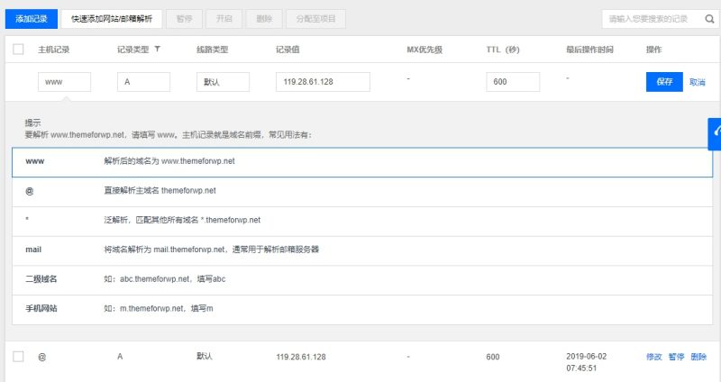 解析域名非常简单,将原来的IP地址替换为新服务器的IP即可