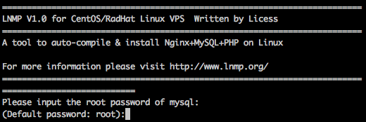 CentOS系统下执行:wget -c http://soft.vpser.net/lnmp/lnmp1.0-full.tar.gz && tar zxvf lnmp1.0-full.tar.gz && cd lnmp1.0-full && ./centos.sh