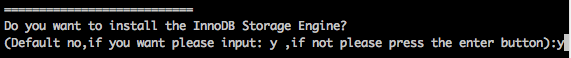 这里需要确认是否启用MySQL InnoDB,如果不确定是否启用可以输入 y ,这个可以单独在MySQL文件里关闭,输入 y 表示启用,输入 n 表示不启用。输入 y 或 n 后回车进入下一步,显示如下信息:
