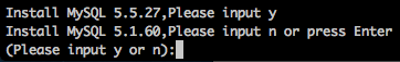 可以选择MySQL 版本 5.5.27 或 5.1.60,安装MySQL 5.5.27的话输入 y ,安装MySQL 5.1.60 输入n,输入 y 或 n 后回车,完成选择。