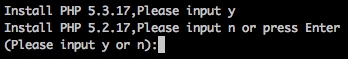 这一步是选择php版本,可以选择 PHP 5.3.17 或 PHP 5.2.17,安装PHP 5.3.17的话输入 y ,安装PHP 5.2.17 输入 n,输入 y 或 n 后回车,进入下一步MySQL版本的选择,如下图: