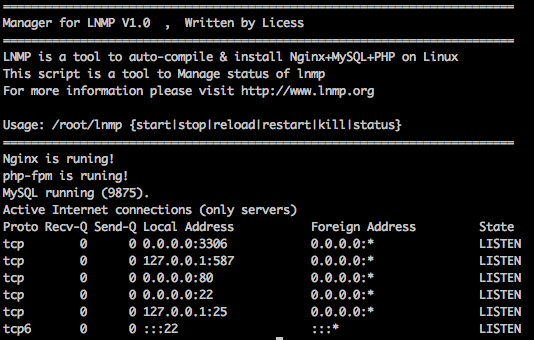 LNMP脚本就会自动安装编译Nginx、MySQL、PHP、phpMyAdmin、Zend Optimizer这几个软件。