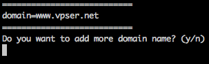 如果需要添加更多的域名,如不需要直接输入 n 回车。如需要输入 y 回车,出现如下图提示: