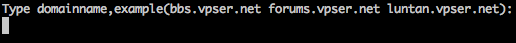 再输入要另外绑定的域名,多个域名可以用空格隔开。比如我要添加的站是多个域名都是访问一个站,输入 vpser.net www.vpser.org vpser.org 回车。