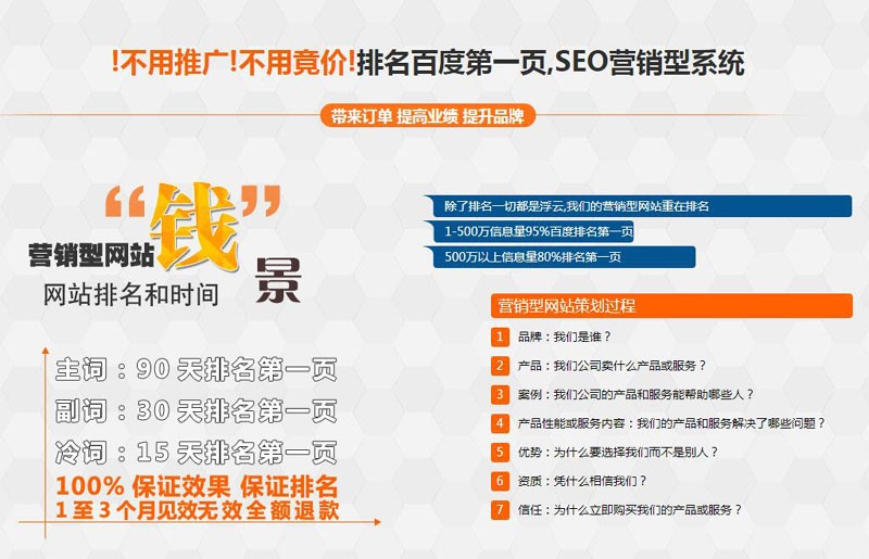 营销型网站:seo优化排名速度比普通网站快一倍以上,百度排名稳定,网站具备自动seo优化维护功能,基本无需专人维护,能优化几十个甚至几百个相关关键词到首页
