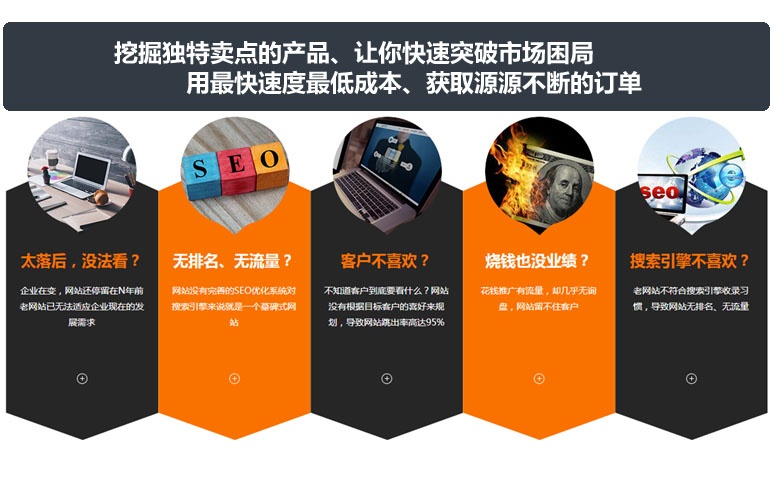 卖点策划:围绕着您的目标客户、核心产品、目标市场、盈利模式为您提炼最精辟的销售话术,让客户第一眼爱上您的网站!