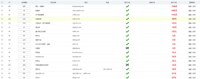 续费管理:用户一键查询.网站什么时候到期.续费多少钱.什么时候签的合同.什么时候上线的.维护记录.续费记录.开票申请.开票记录.是否有申请优化.优化的排名记录.收费情况等