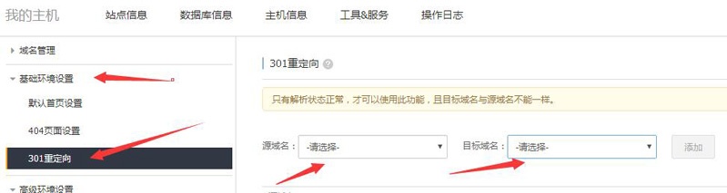 2、虚拟主机后台自带301重定向功能设置方法