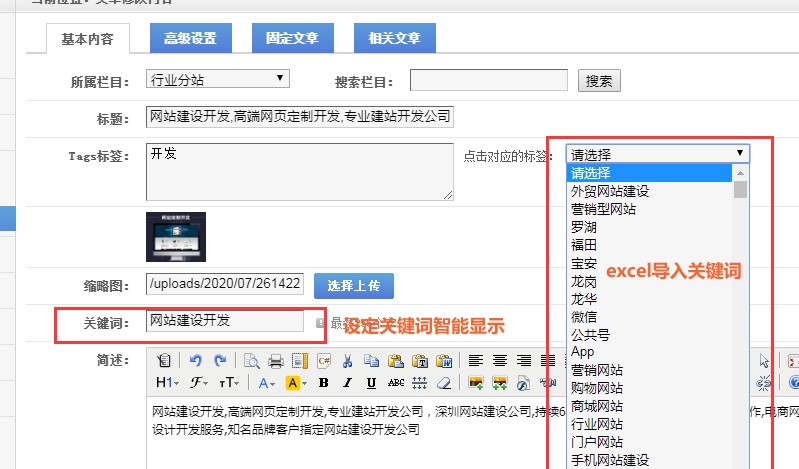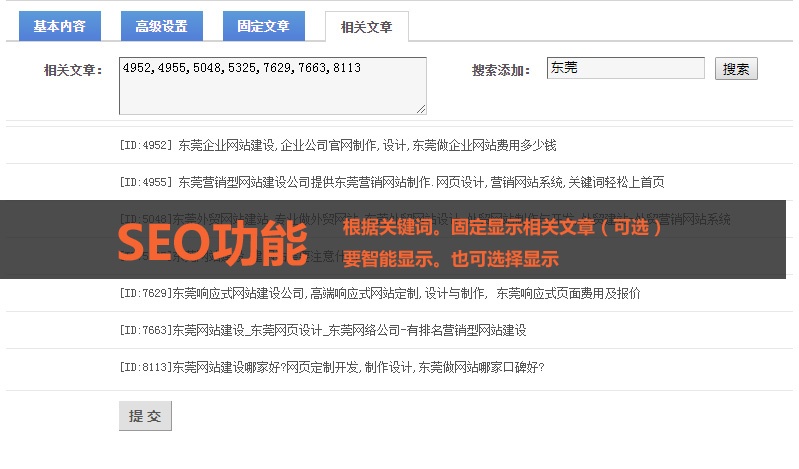 可以根据栏目关键词自动显示相同关键词的文章。或指定显示。有利于排名